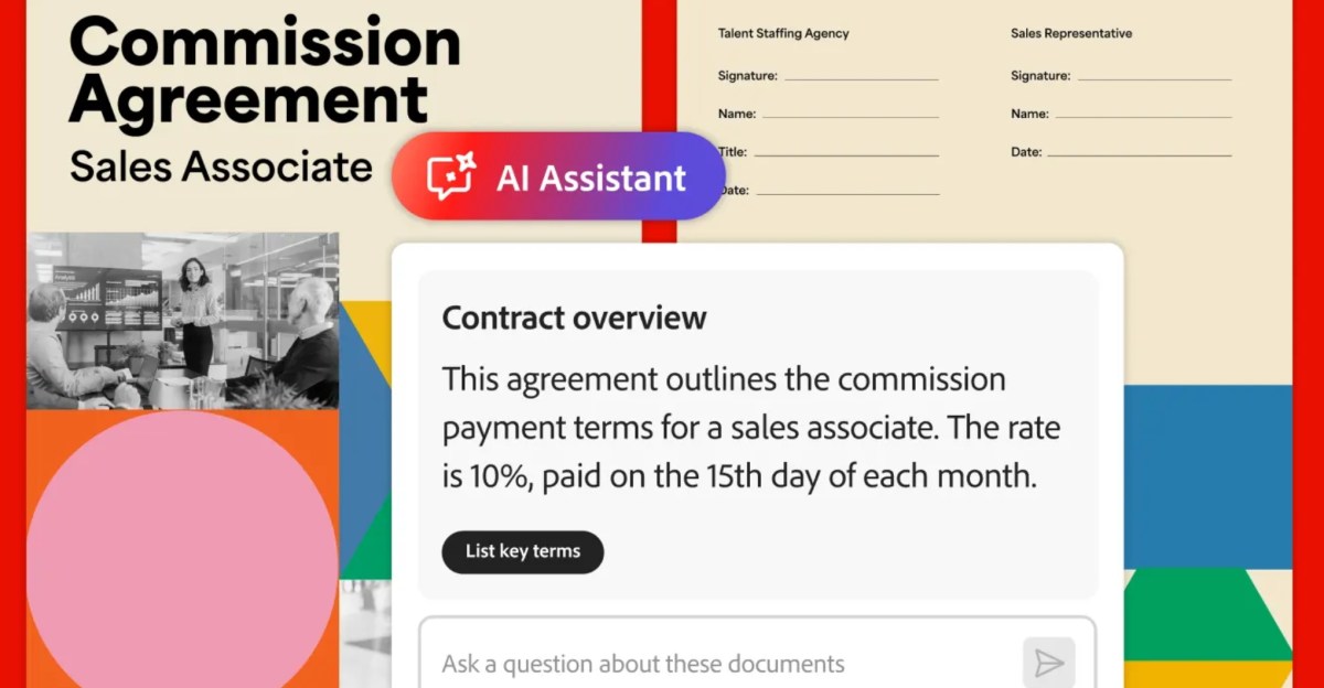 Adobe is adding features to Acrobat’s AI Assistant that should help users to better understand contracts. The new “contract intelligence capabilities” allow the PDF management software’s chatbot to automatically recognize when files and scanned documents are contracts and summarize complicated language to make it easier for users to understand.