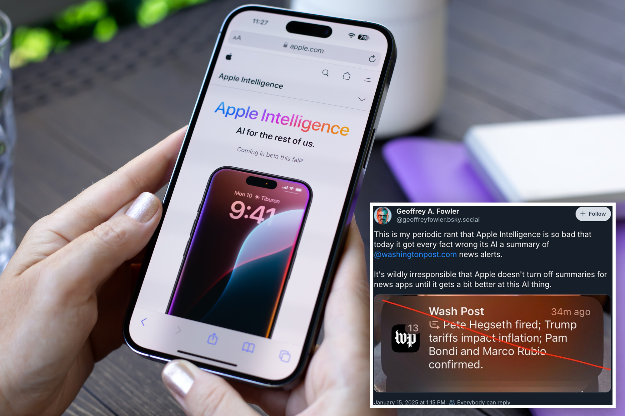 “This is my periodic rant that Apple Intelligence is so bad that today it got every fact wrong its [sic] AI a summary of @washingtonpost.com news alerts,” Fowler wrote on social media platform Bluesky.