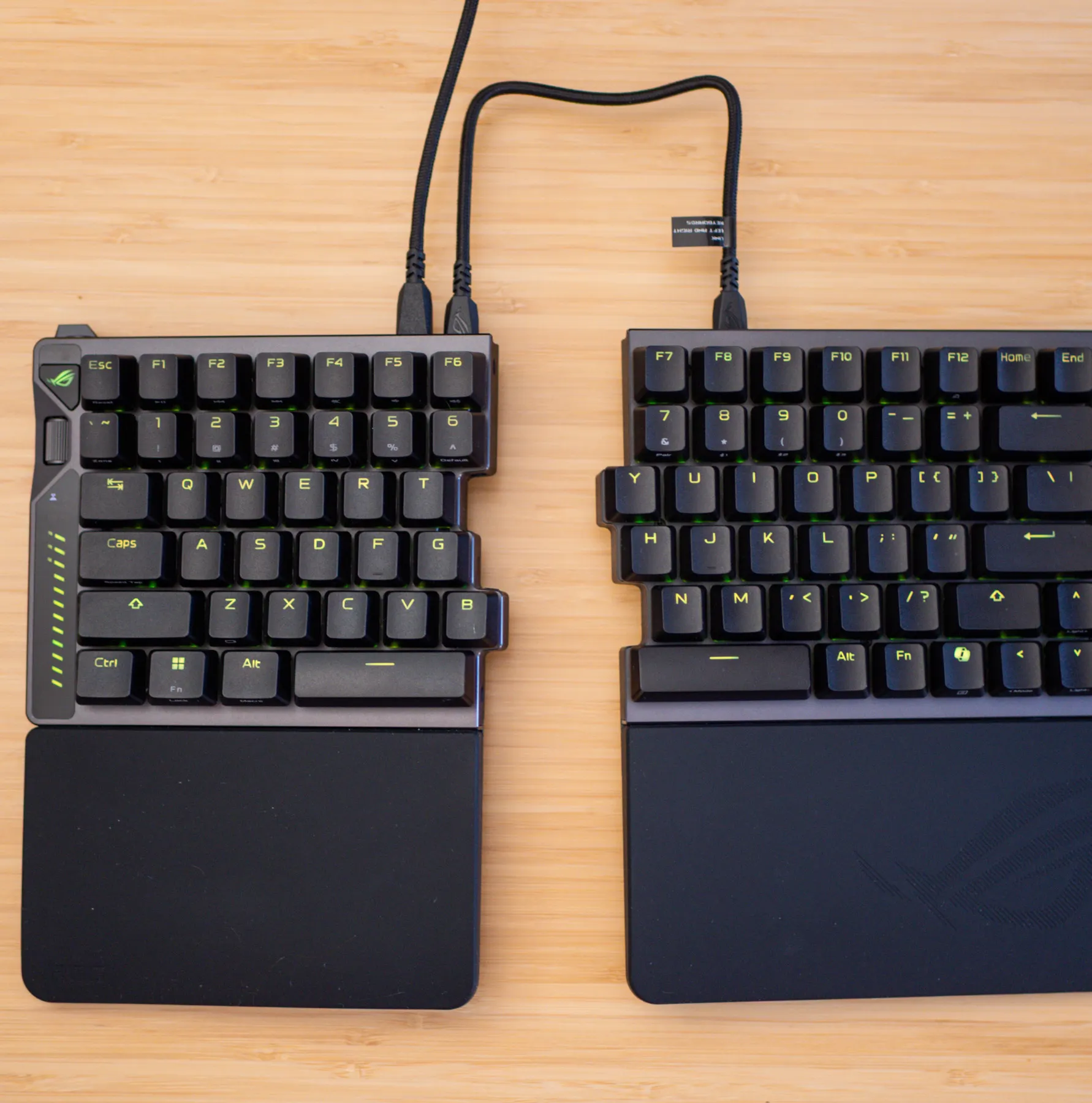 You may not know what feels right until you use a tented keyboard, but at this price, Asus should have included more tenting options — and longer USB-C link cables, too. The halves can only be separated by a maximum of 10 inches, which doesn’t let me spread my arms as much as I need to feel relief (the Freestyle’s non-detachable cable can go up to 14 inches). Sure, I can use my own longer cable with the Falcata, but at $420, this is an oversight.