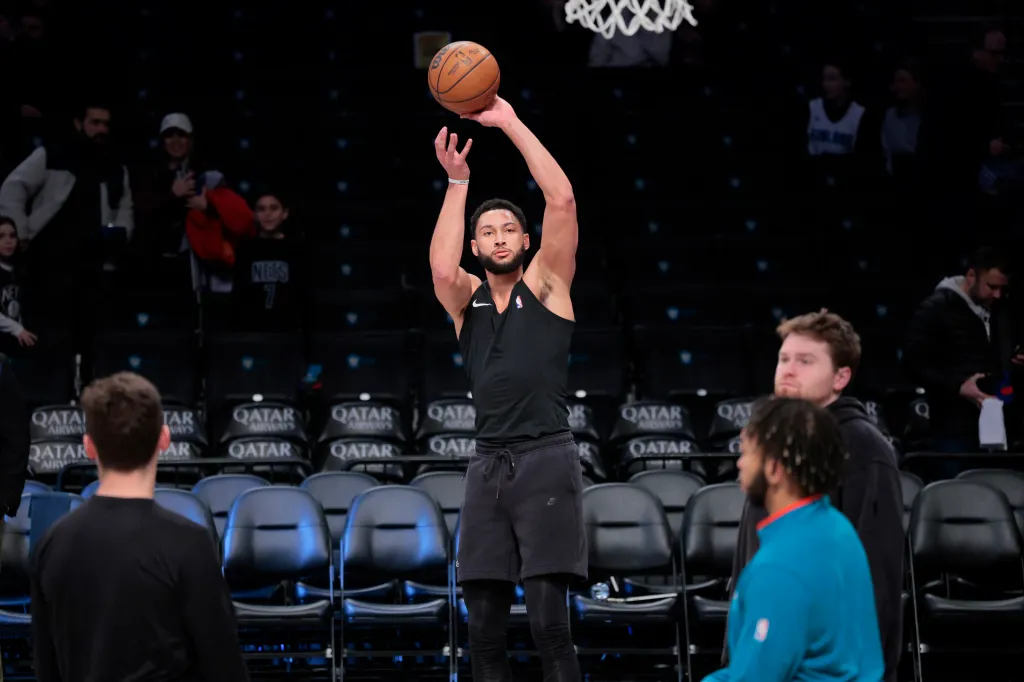 Brooklyn Nets guard Ben Simmons warms up before the game.