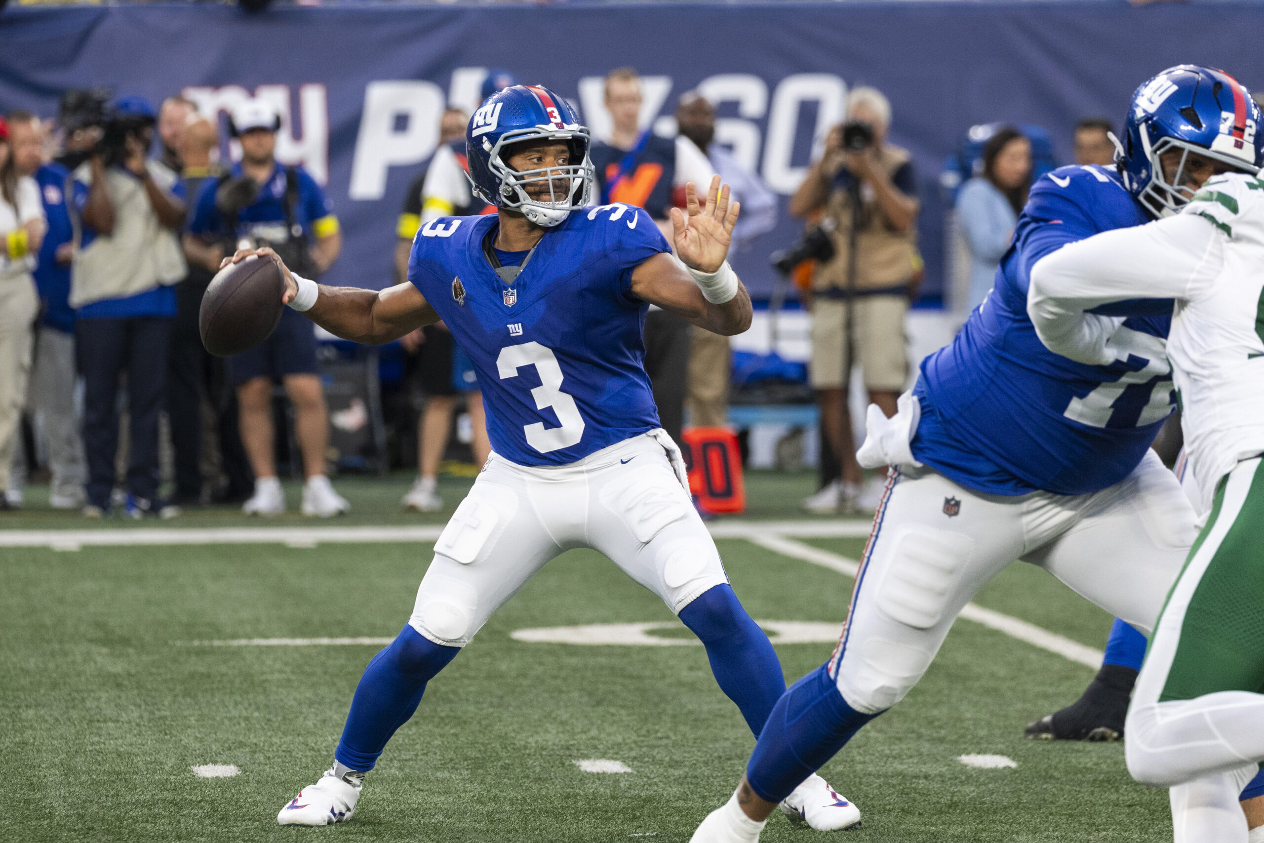 Giants fans will get their first look at Russell Wilson behind center.