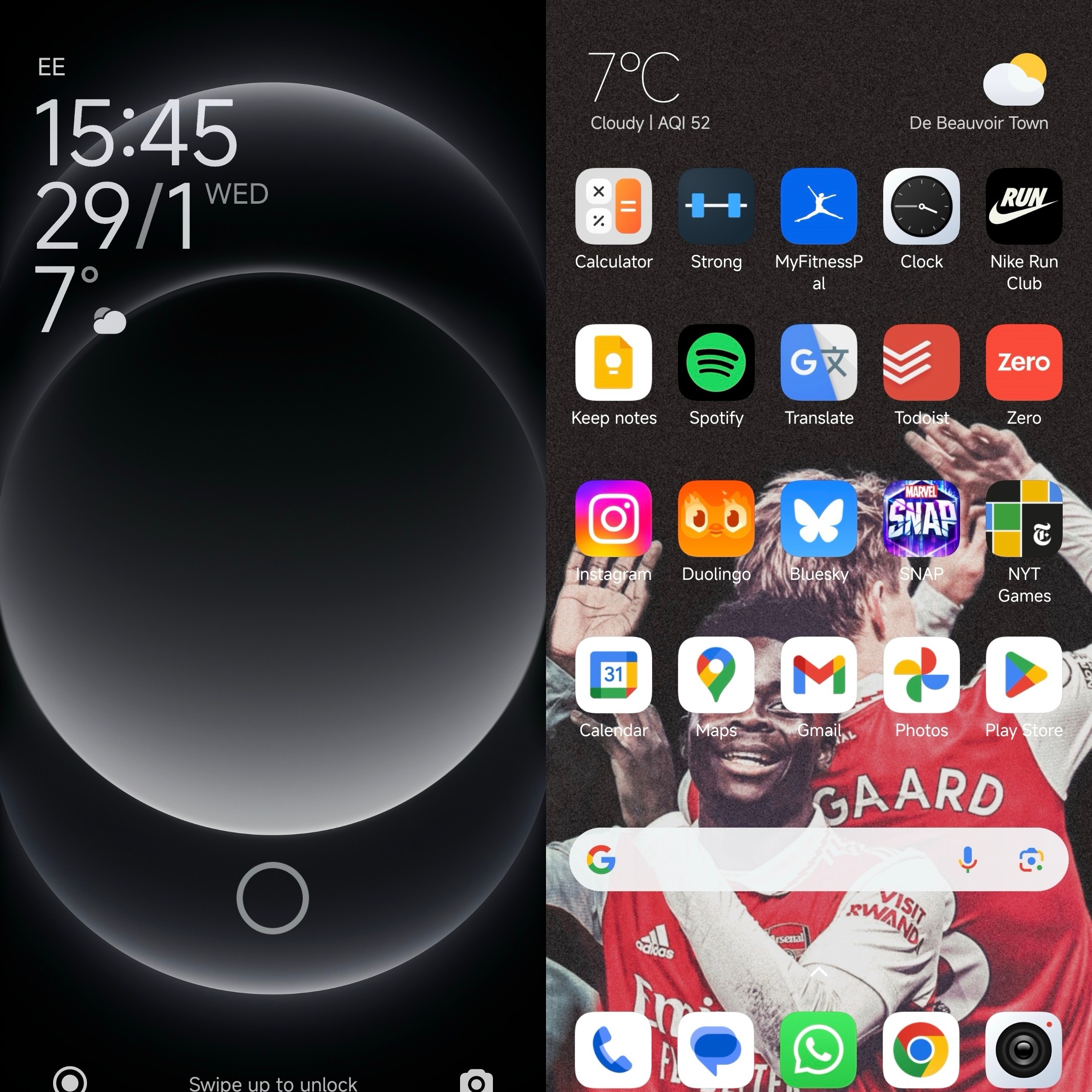 The wallpaper: My lockscreen is apparently one of the generic preinstalled ones from Xiaomi. The wallpaper is a photo of a couple Arsenal players I started using when I needed to test iOS 16’s customizable lockscreens and haven’t touched since then. Can you tell I don’t think about my wallpapers very often?
