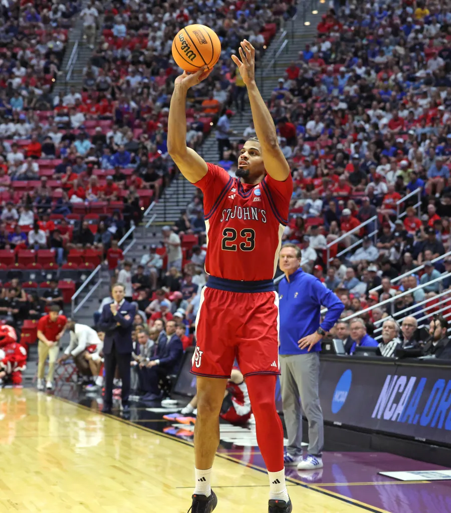 Dylan Darling sent St. John’s past Kansas at the buzzer with a right-handed layup. The southpaw point guard received the inbounds pass near half-court with 3.9 seconds left and drove past Jayhawks guard Elmarko Jackson to the rim. The basket represented his only points of the second-round contest.
