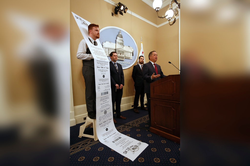 A bill in California’s state assembly takes aim at paper receipts and if passed, would ban businesses from handing customers receipts unless they specifically ask for it.