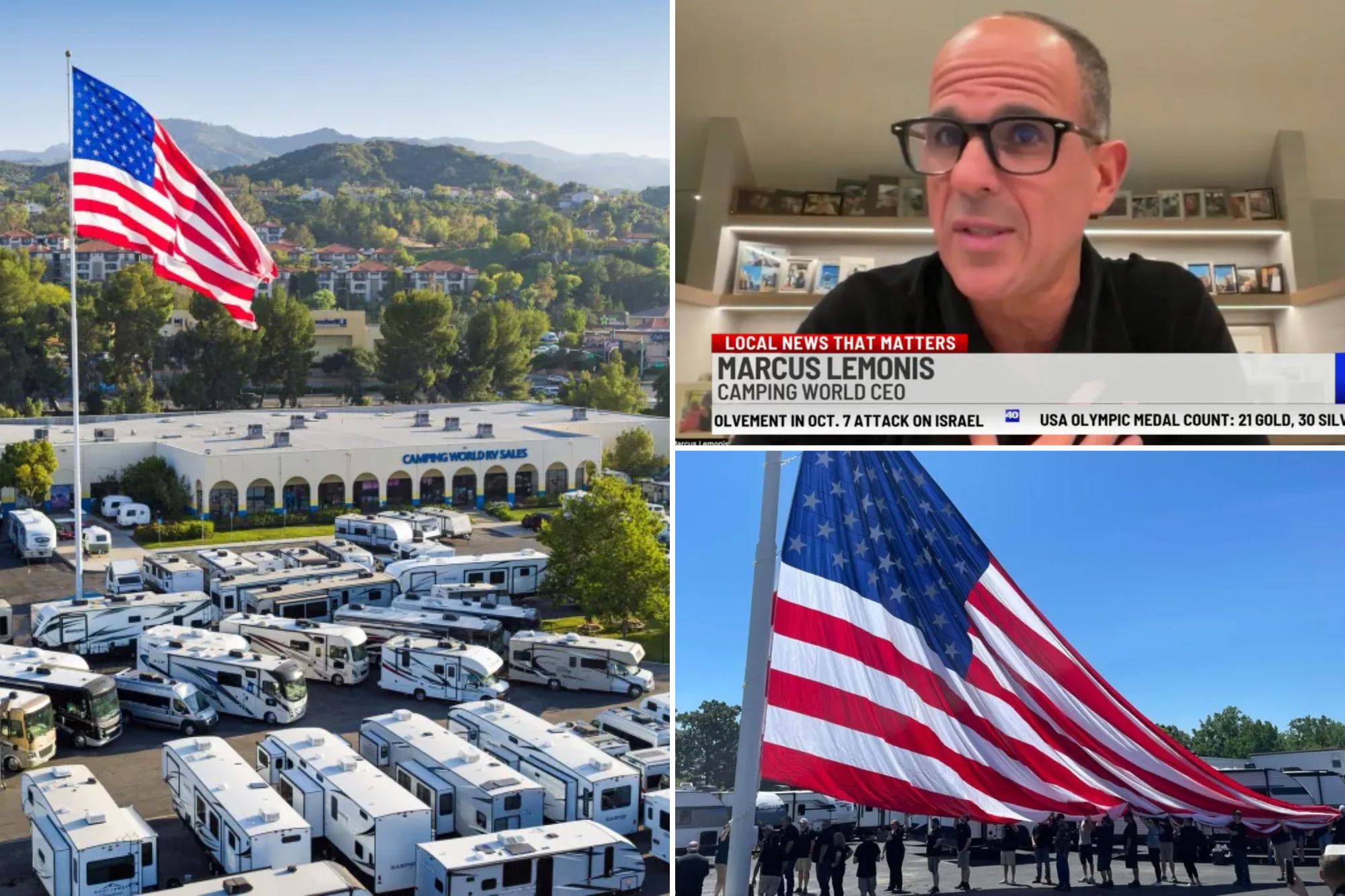 A California RV dealership is defiantly displaying the massive American flag it was told to take down by local officials earlier this year — despite proudly flying similarly sized versions of the Stars and Stripes at its more than 250 other locations across the country without issue.
