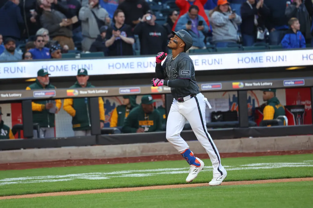 Jorge Polanco looks up to the sky after hitting a home run in the seventh inning of the Mets’ 11-6 loss to the A’s on April 11, 2026 at Citi Field. Robert Sabo for NY Post