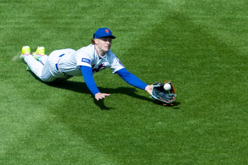 Sunday against the A’s, with the Mets down by a run, Benge made an excellent diving catch in shallow center to rob Denzel Clarke of a two-run single to end the top of the fourth.