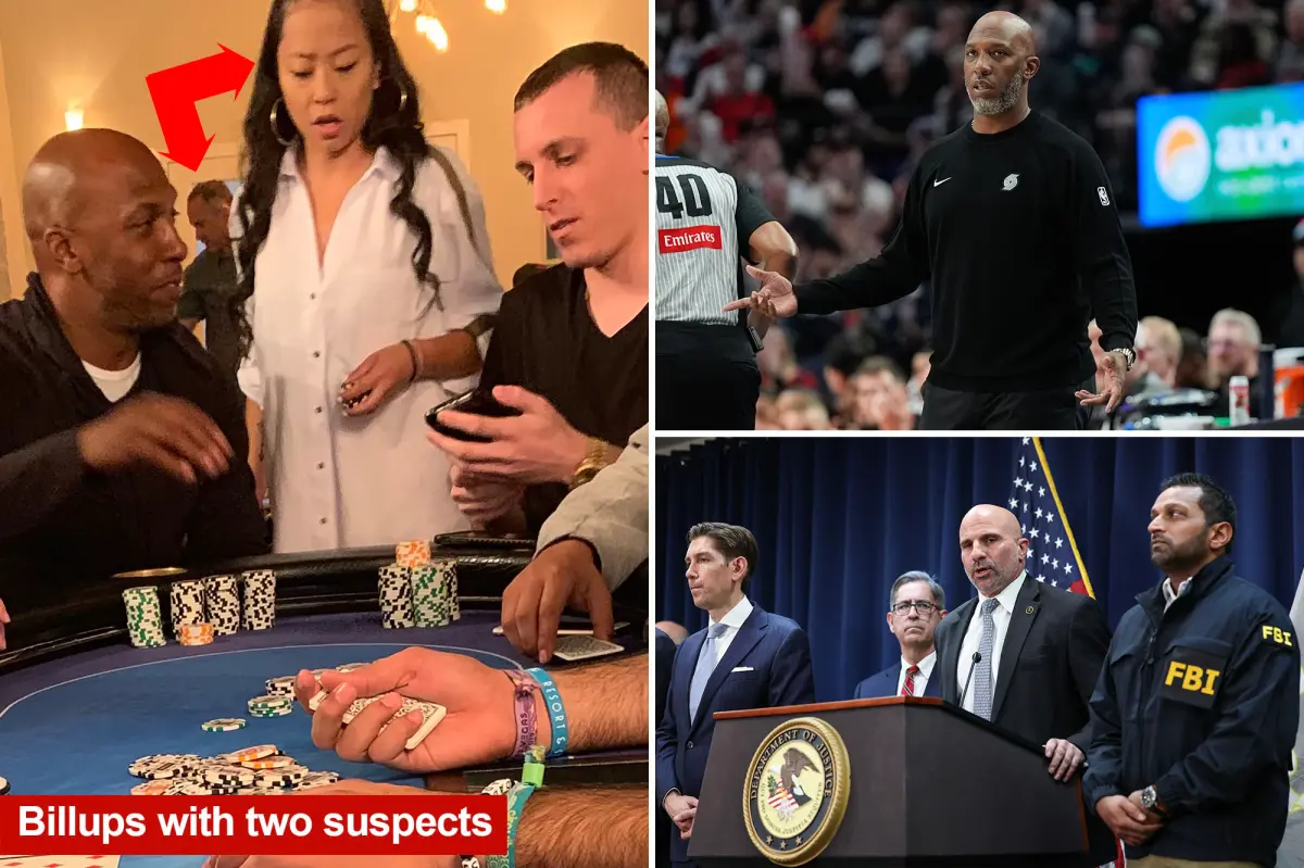 Portland Trail Blazers head coach Chauncey Billups can be seen in a photo from 2019 playing poker with two people he was charged alongside Thursday in a new bombshell indictment accusing them of participating in rigged poker games.