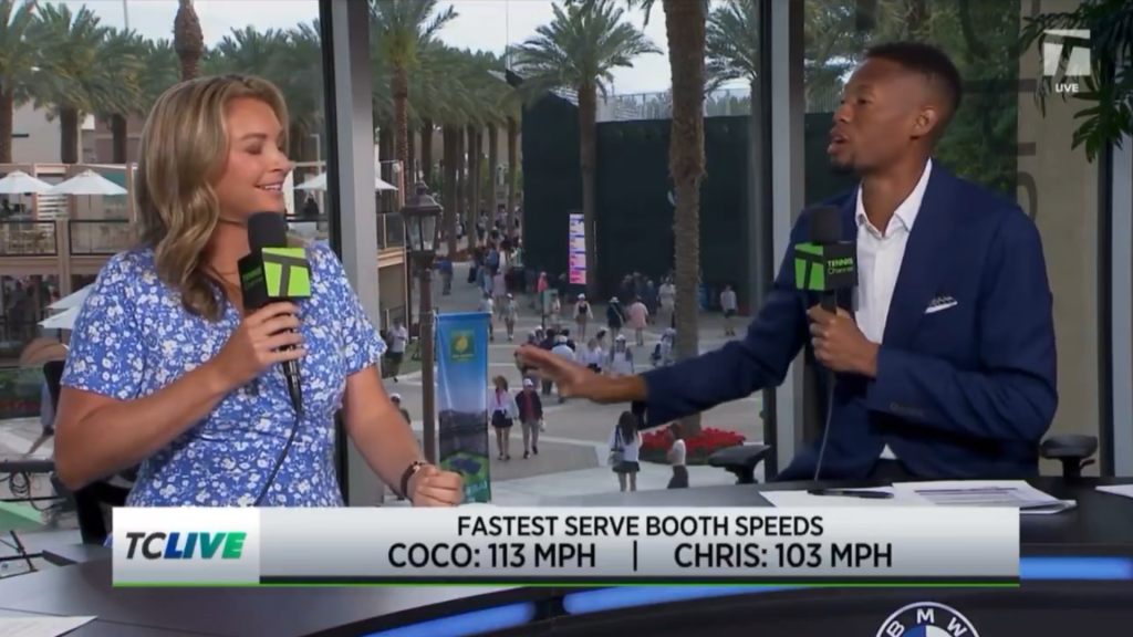 Former pros Chris Eubanks and Coco Vandeweghe, along with comedian Hannah Berner, recorded a speed serve test for the broadcast Sunday.