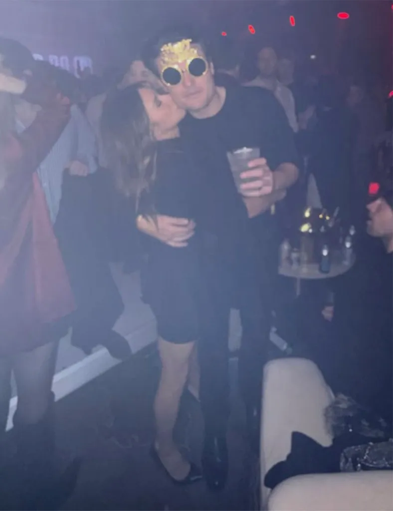 Patrick is seen kissing the side of his face as he donned Happy New Year tinted glasses.
