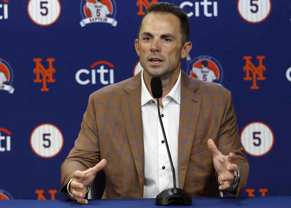 Mets great David Wright talks to the media before his number retirement ceremony on July 19, 2025. Jason Szenes / New York Post