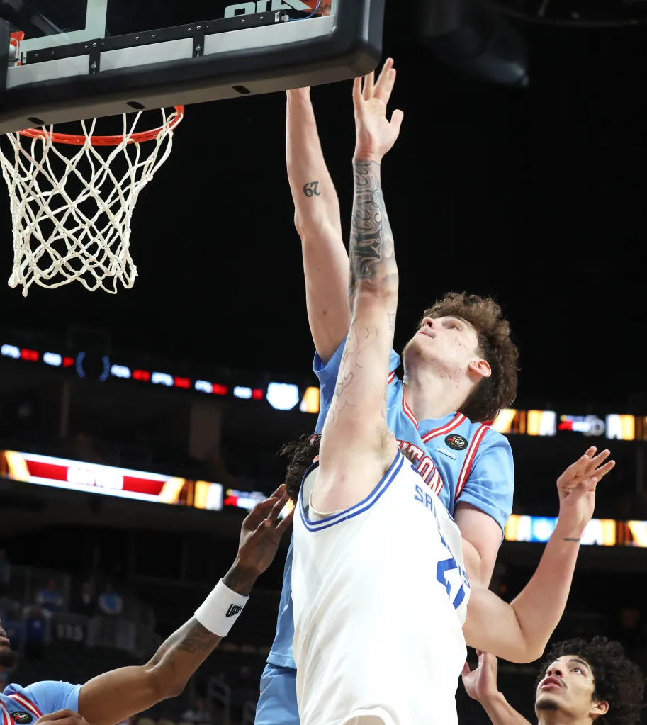 And instead, Derkack drove to the basket and tried to split a pair of St. Louis defenders, though his layup attempt just floated harmlessly over the basket.