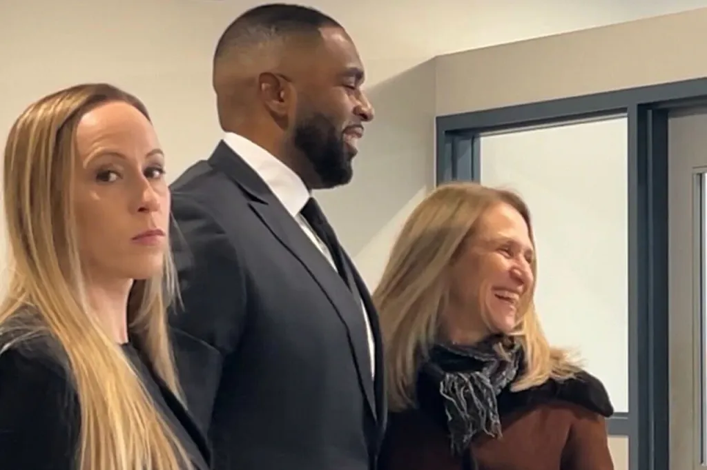 Disgraced ex-University of Michigan football coach Sherrone Moore’s grim-faced wife threw a fierce stare on Thursday as her husband faced court for the first time since being charged over an alleged incident involving his mistress.