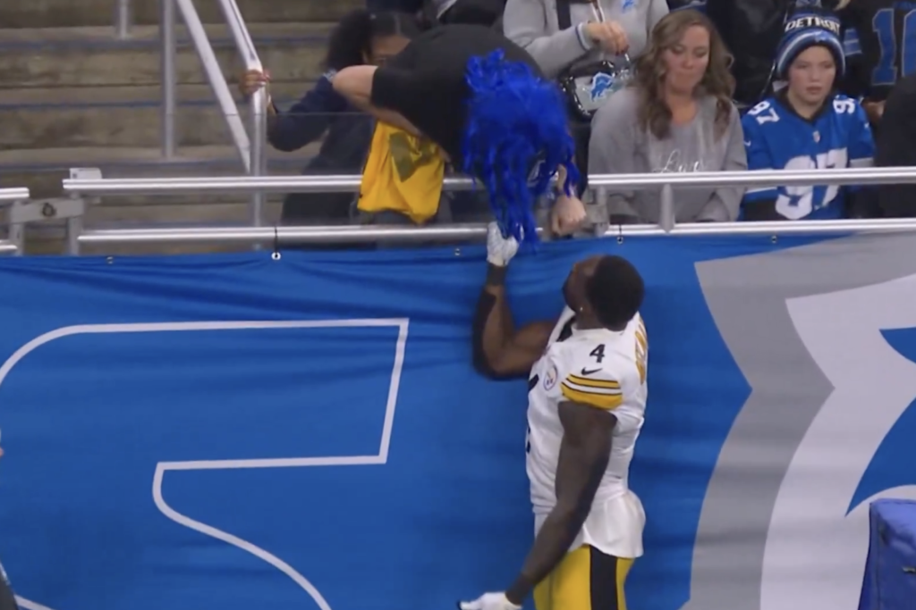 Metcalf was shown on the CBS broadcast swiping at a Lions fan sporting a blue wig in the front row during the second quarter.