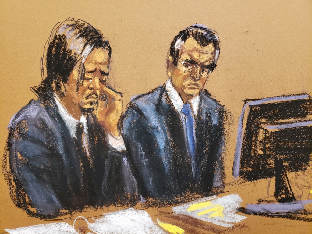 Courtroom sketch of Roger Ng in March.