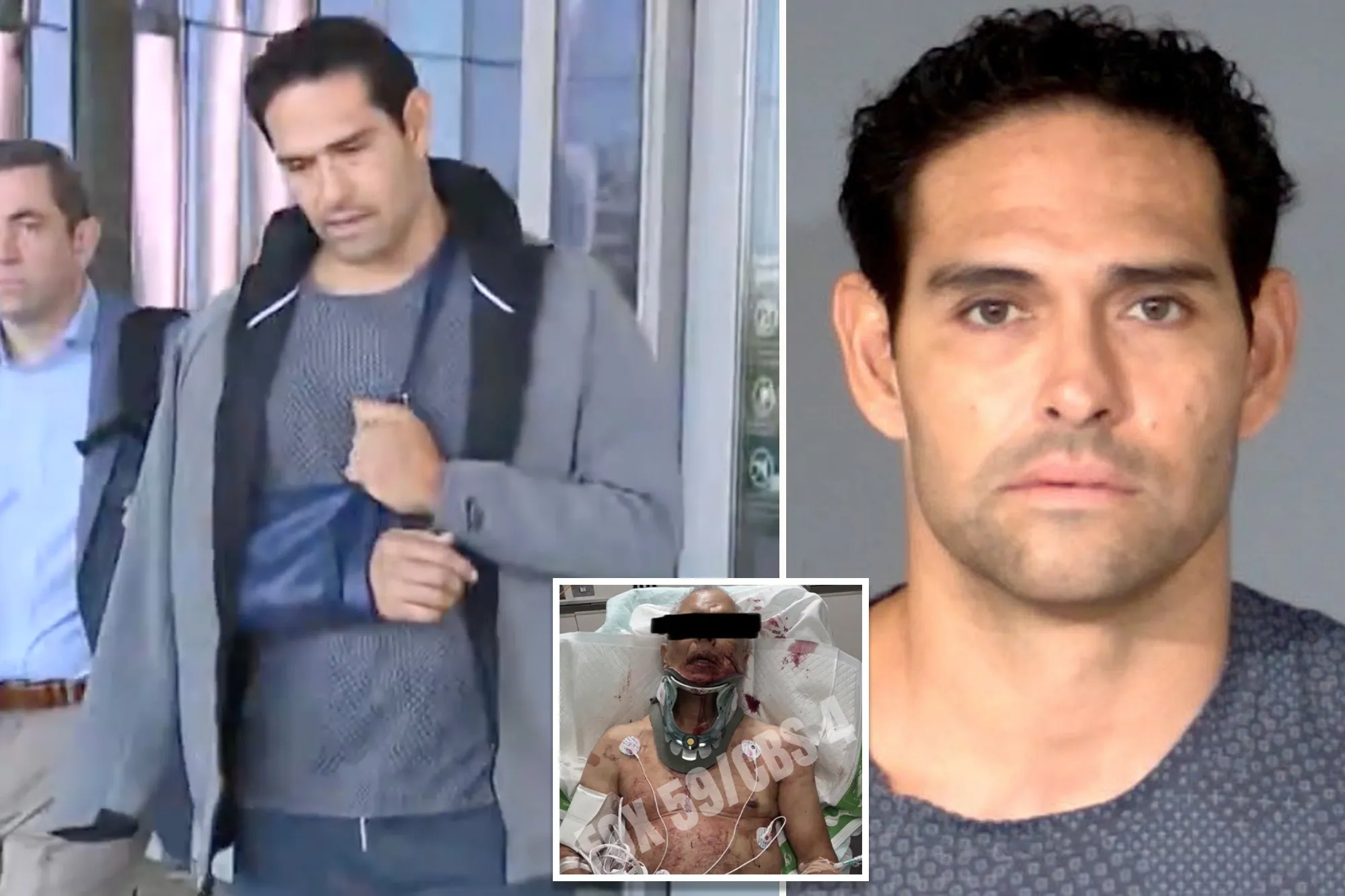 Sanchez, 38, broke his week-long silence when a crew with Fox 59 questioned him as he left the Marion County Jail, where he had been booked and processed on a felony battery charge. He hobbled out, seemingly close to tears with one arm still in a sling.