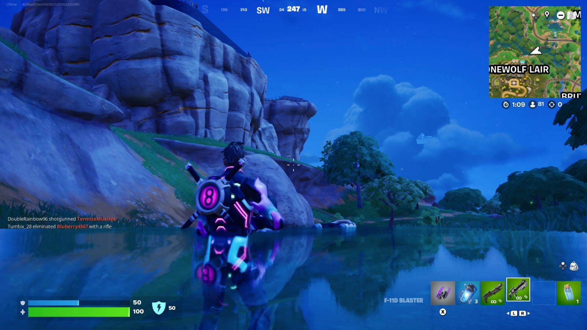 Before I was usually only able to check out the lobby for a couple of seconds before being pushed onto the Battle Bus because of how long the console spent stuck on its loading screen. But during my first Switch 2 Battle Royale, what shocked me most at first was to find my avatar standing in a lobby with ample time to mess around emoting at other players and checking out what kinds of skins they’d slapped on. I actually wanted to watch people dancing and playing instruments because there was time to do so without having to rush and get ready before everyone started shooting. And once the match had properly begun, I found myself way more interested in running around to look at waterfalls and watch NPC wander through neighborhoods as the sun set because of how much more visually impressive the island is with the update’s improved lighting and textures.