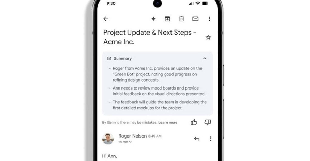 The automatic summaries will now appear above English-language emails, but only on mobile, and may take up to two weeks to appear for your account. Google hasn’t announced if or when the feature will expand to Gmail on desktop, or to Gmail users without paid Workspace accounts.