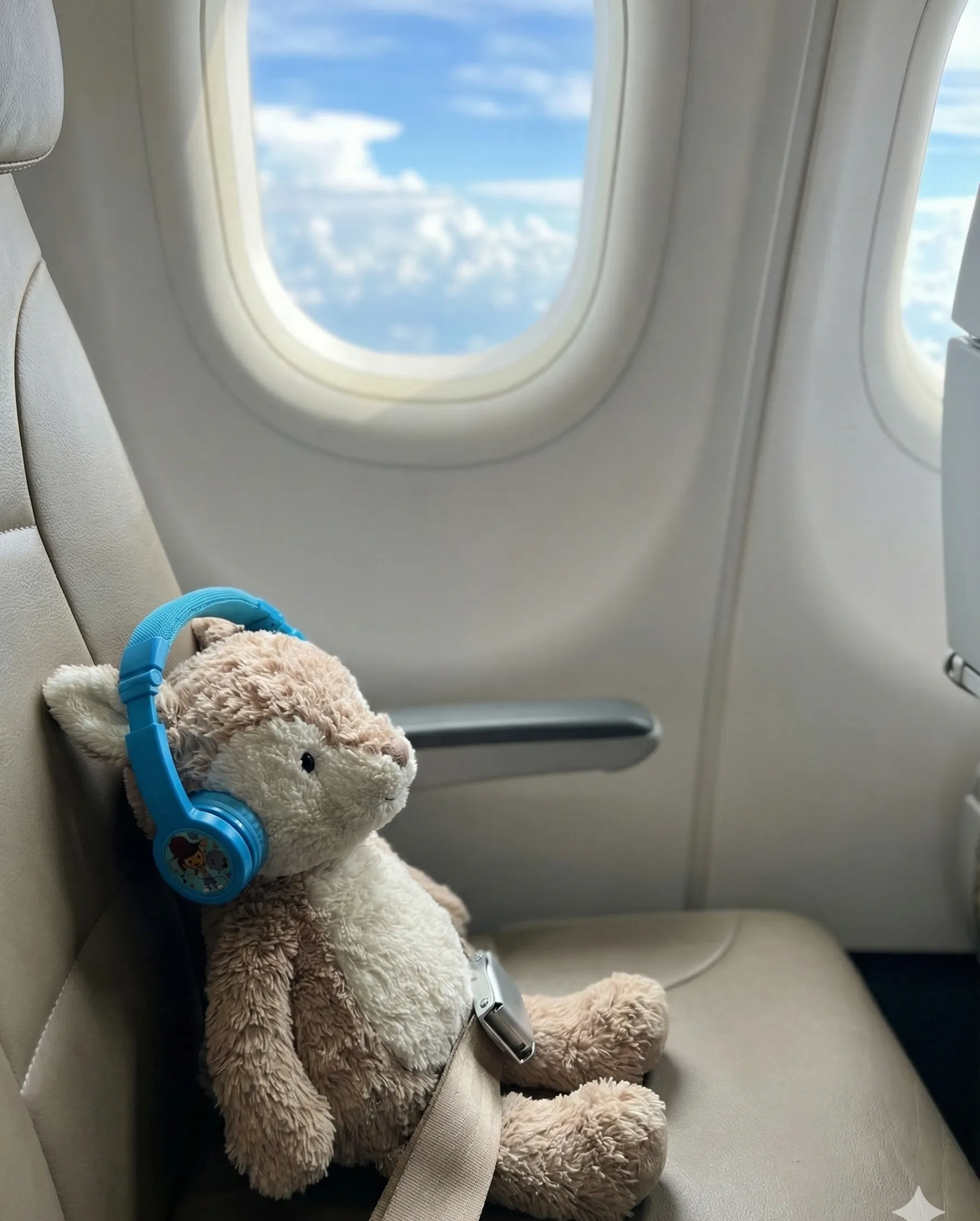 Gemini did a better job with the second half of the assignment, but it wasn’t quite as easy as the ad makes it look. I started with a different photo of Buddy — one where he’s actually on a plane in my son’s arms — and gave it the next prompt: “make a photo of the deer on his next flight.” The result is pretty good, but his lower half is obscured in the source image so the feet aren’t quite right. Close enough, though.