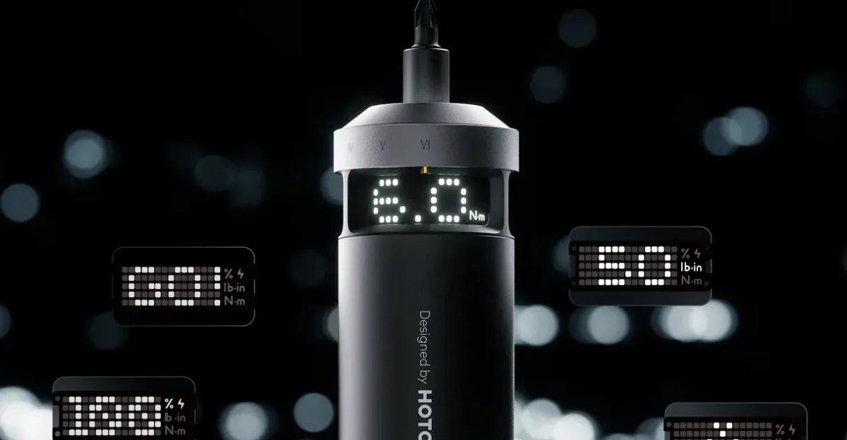 Hoto’s latest electric screwdriver introduces a couple of novel usability improvements. Now, you’ll find a pixelated display on the business end of the driver showing details like its remaining battery life, while a multi-function button lets you adjust its speed and switch directions with just one finger.
