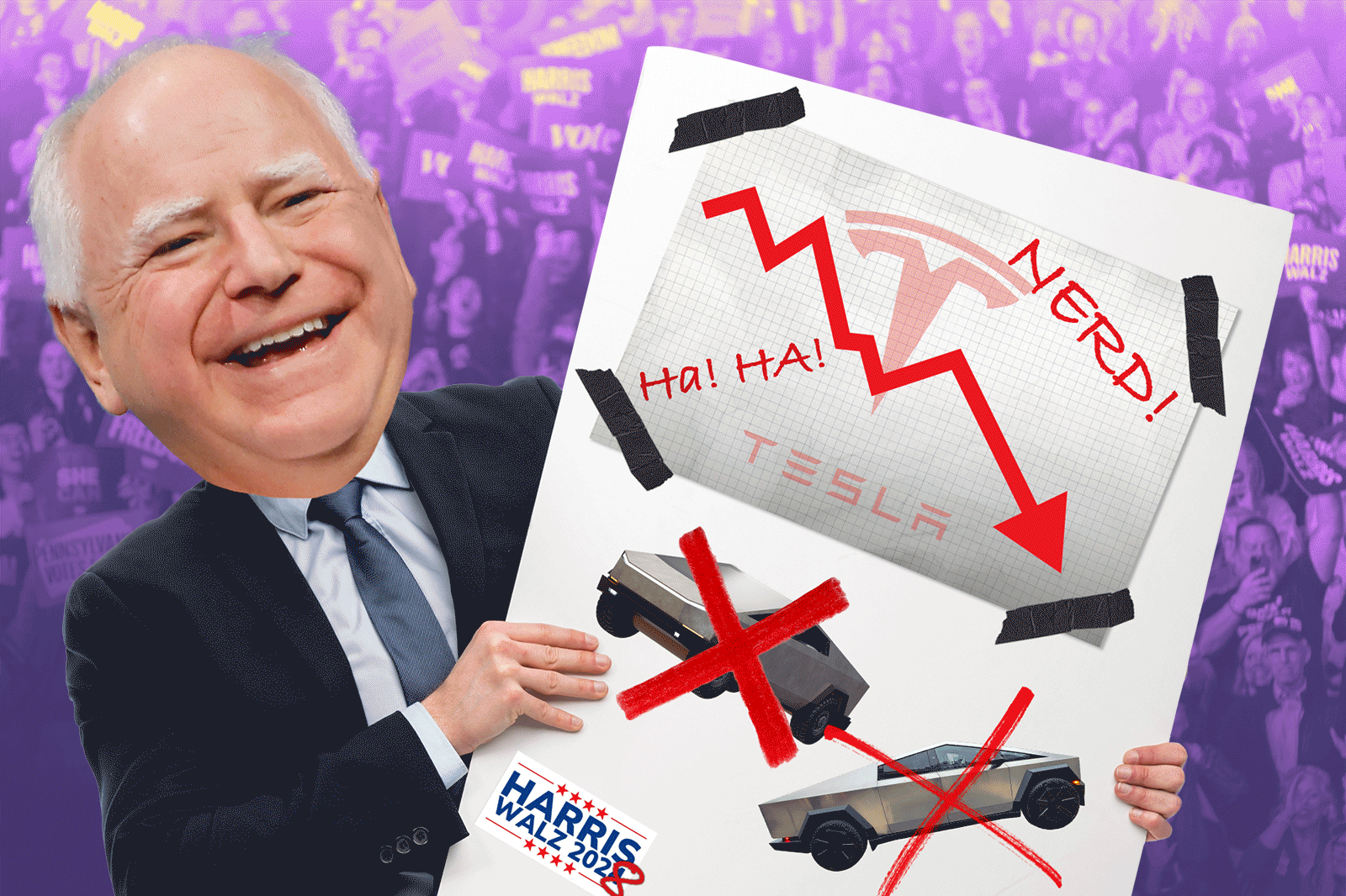 Yes, Musk is the bane of the loony left these days for being a progressive apostate, culling stuff like taxpayer funded transgender dance festivals in Bangladesh from the federal budget. For those mortal sins, not only did Walz call Musk a “dips-it” (and some other choice words), but he also took some inappropriate shots at his EV company.