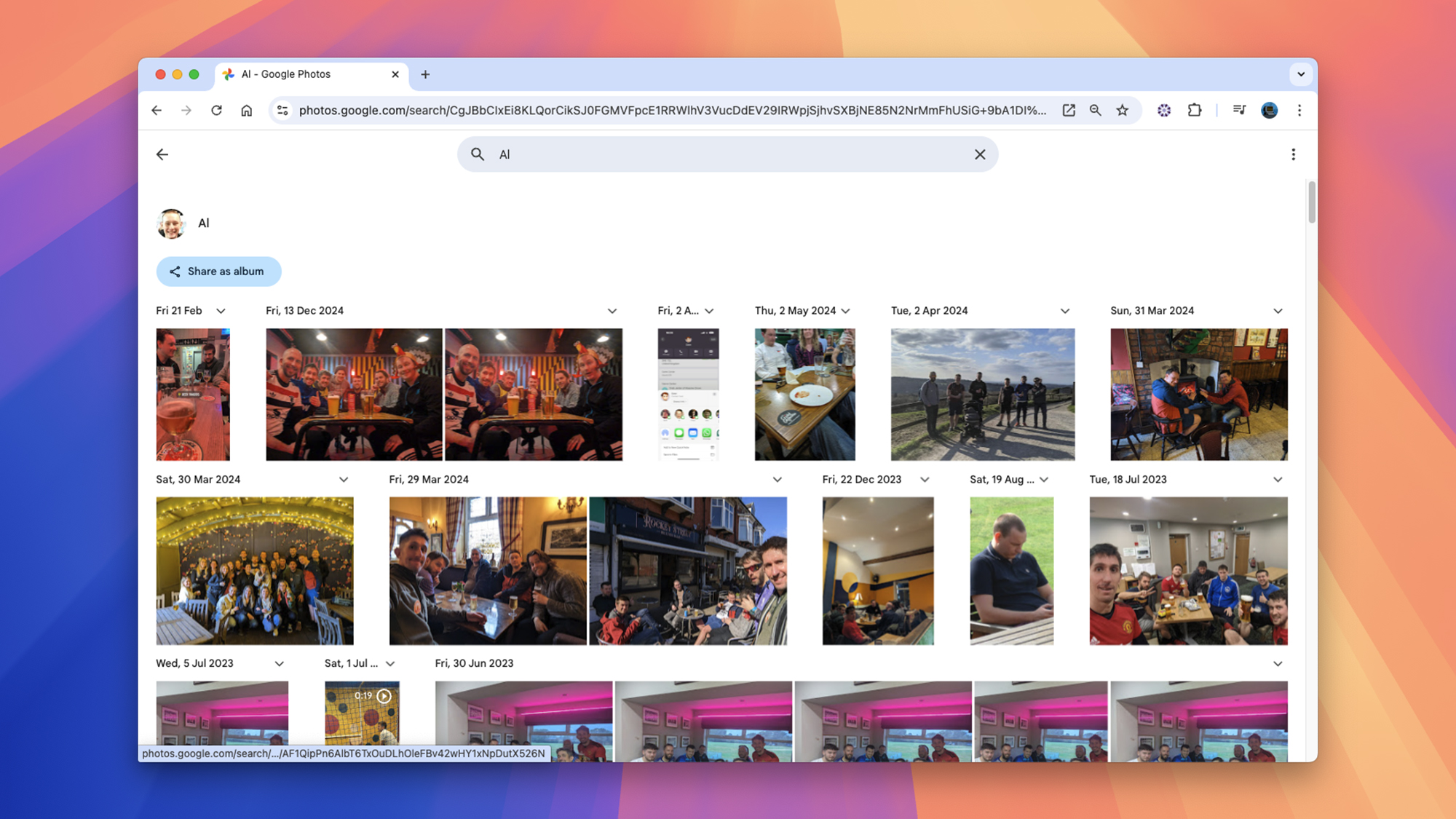 You can also enter a time period in the search box at the top: putting in a year, a month and a year, or even a specific date will return accurate results. Seasons also work, so you could use “summer 2023” or “winter 2024.” Date range searches are possible by using the “#date_range:yyyymmdd-yyyymmdd” format in the search box. So, for example, “#date_range:20250101-20250201” would give you all the photos taken during January 2025.