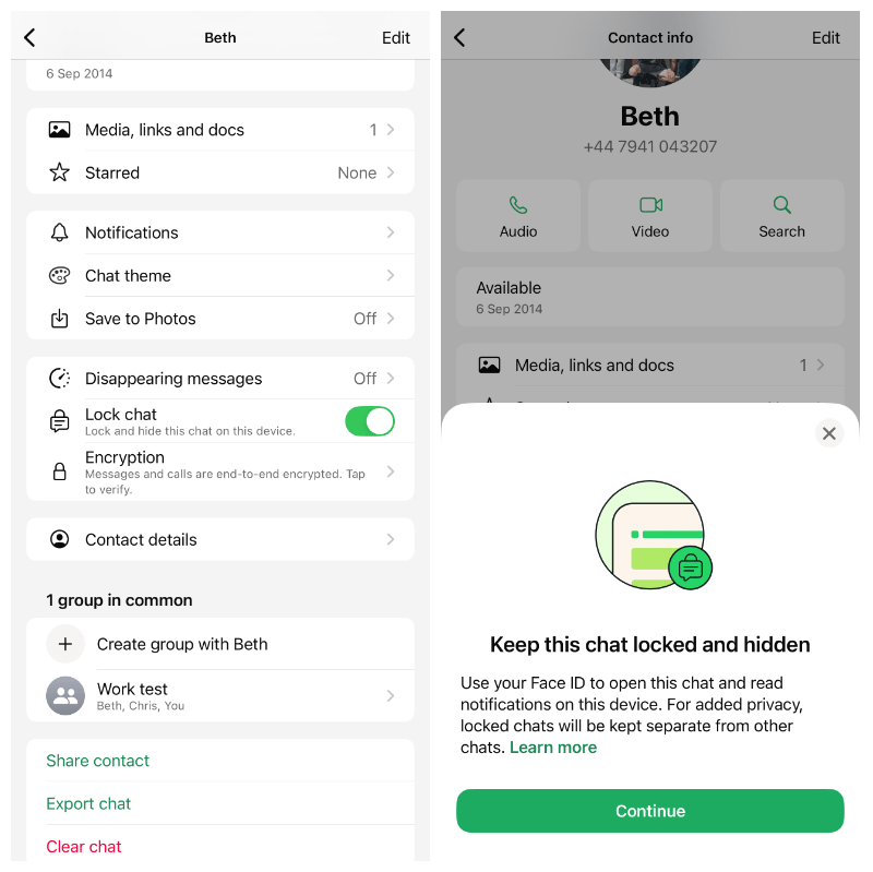 As well as putting individual chats behind an extra layer of security, you can also do this for WhatsApp as a whole. If someone should somehow get into your phone, they won’t be able to get at anything inside WhatsApp without a face or fingerprint scan.