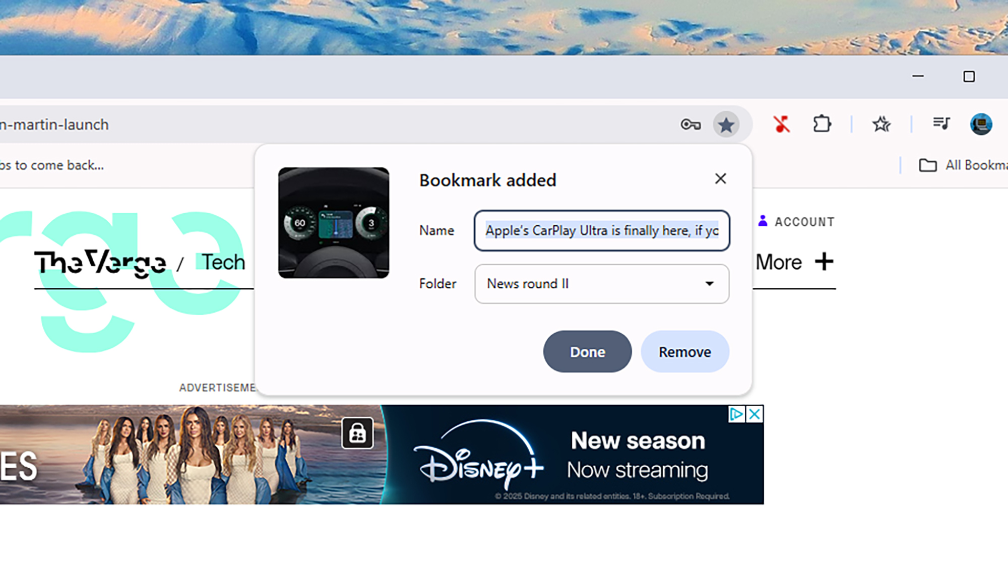 • Here’s a clever trick for your desktop bookmarks bar: right-click on each bookmark in turn, remove the text in the Name field completely each time, and click Save. You’ll then have a compact row of bookmark icons showing only the favicons for each site (such as a purple V for noti.group). It’s a neat way to put more bookmarks within each reach, and you can still tell what each one is.