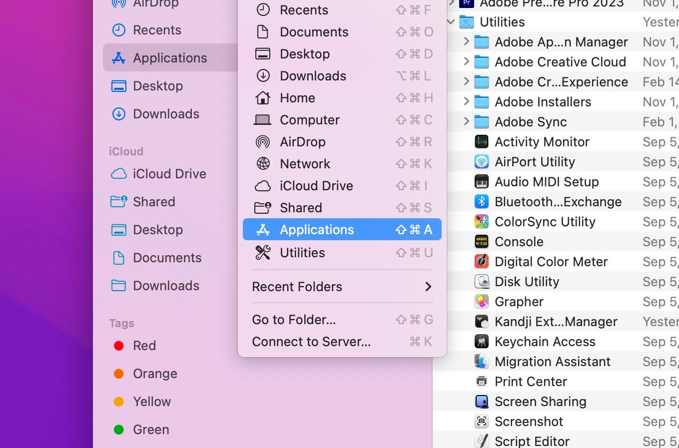 - Open up the Terminal application from the Applications > Utilities folder. You can get there from Finder by going to the Go menu on the toolbar and selecting Applications.