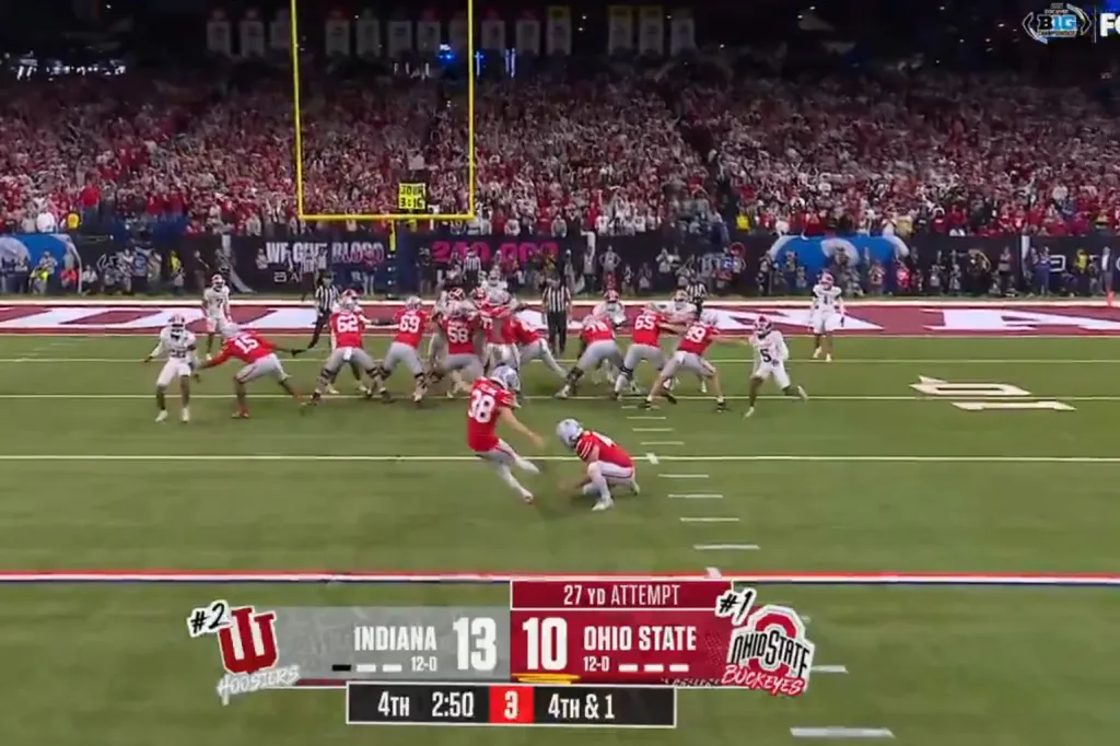 It captured the shocked feeling spreading around Lucas Oil Stadium with less than three minutes remaining in the Big Ten championship game on Saturday in Indianapolis, as Ohio State kicker Jayden Fielding missed a 27-yard attempt that would’ve tied the game at 13.