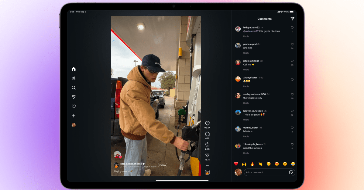 Most significantly, the iPad app will open directly to a feed of Reels, the company’s TikTok competitor — perhaps a sign of the short-form-video times. Back in April, reporting indicated that Meta was working on an iPad app for Instagram after years of dragging its feet, in part prompted by the legally and politically iffy spot TikTok found itself in. For years, Instagram for iPad was something to tackle “at some point” — until its biggest competitor was facing what would effectively be a ban in the US. From this perspective, opening the app straight to Reels makes perfect sense.