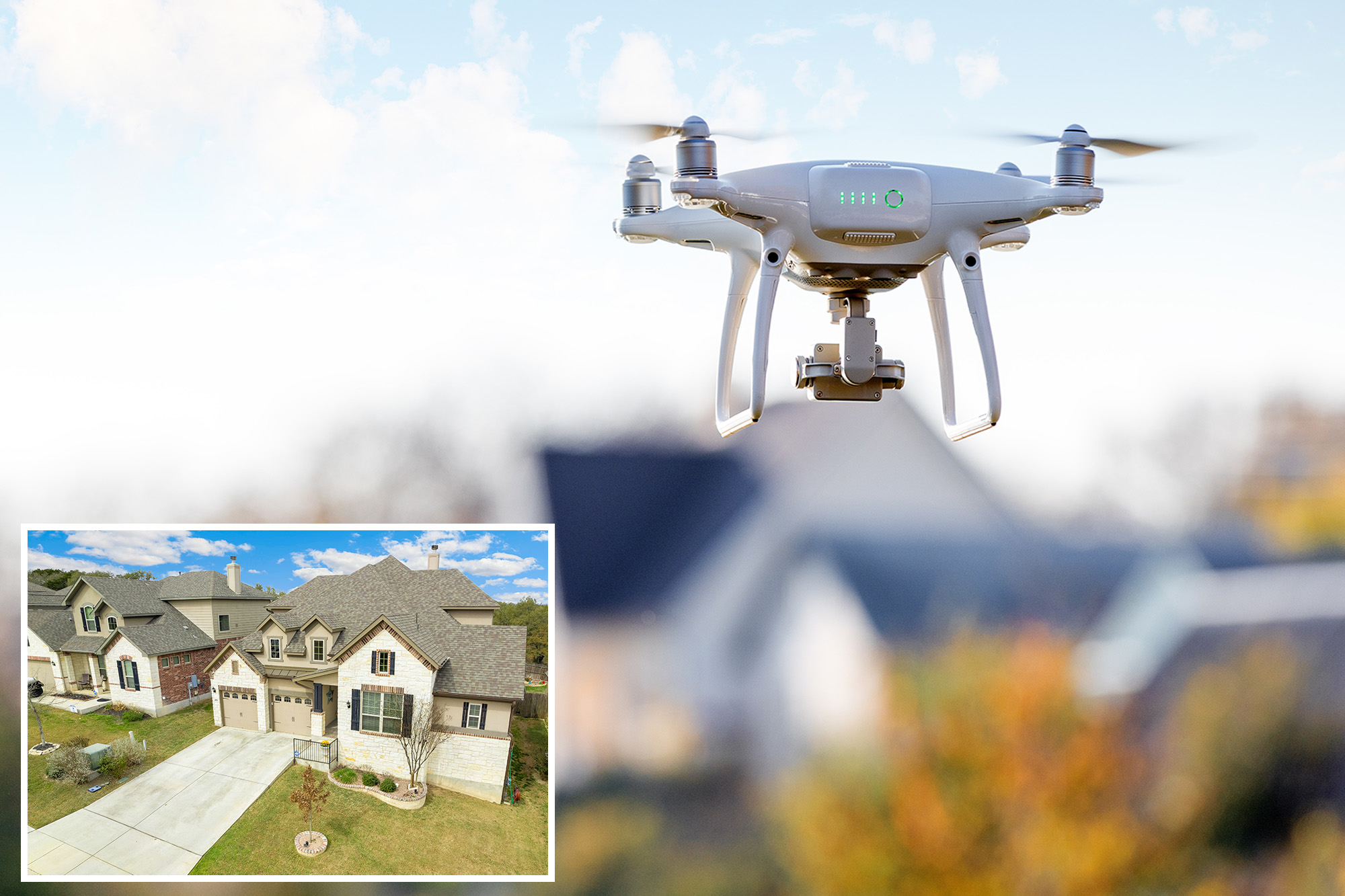 Insured homeowners are reporting that underwriters have flagged issues with their roofs using images taken by drones and other aerial vehicles. christian.bitzas – stock.adobe.com
