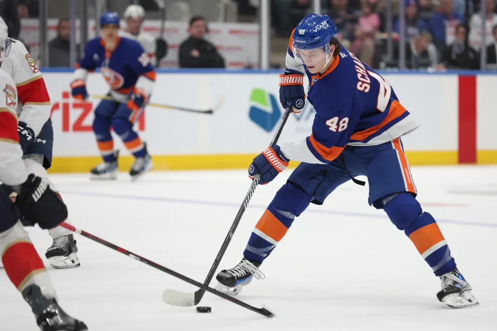 Brayden Schenn (one goal, two assists) had his most productive game since joining the Islanders (42-27-5). Matthew Schaefer tied Stefan Persson (1977-78) for most points by a rookie defenseman in a season with two assists, giving him 56. The fourth line continued its strong play with Marc Gatcomb and Casey Cizikas both scoring.