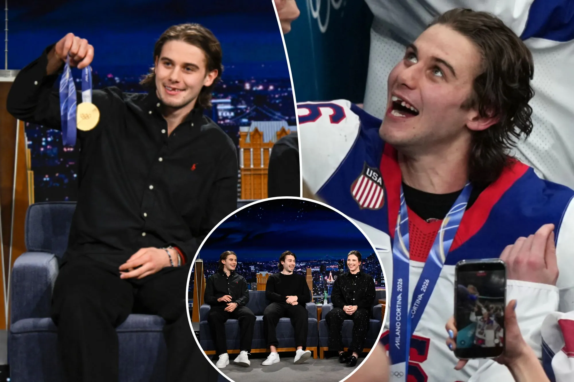 Hughes, his brother and fellow gold medalist Quinn, and gold medal-winning women’s hockey player Hillary Knight appeared on “The Tonight Show Starring Jimmy Fallon” on Monday to continue their victory tour, which included a stop on “Saturday Night Live” over the weekend.