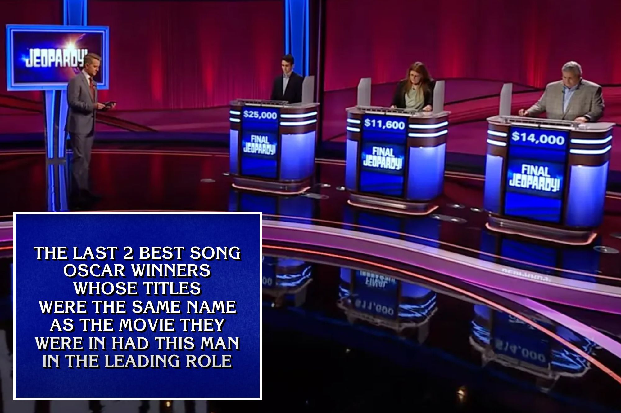 “The last 2 best song Oscar winners whose titles were the same name as the movie they were in had this man in the leading role,” the clue read.