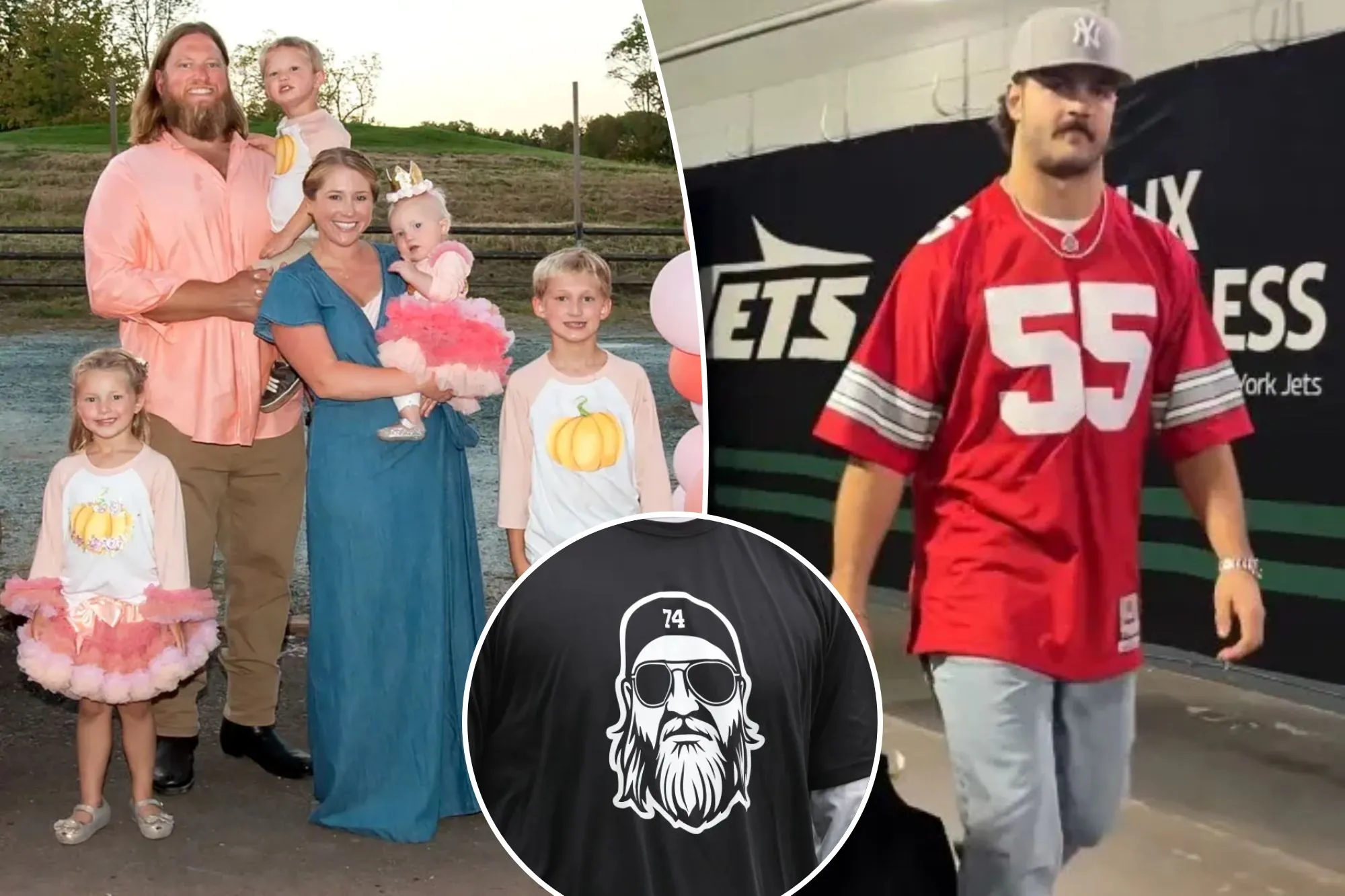 The Jets players and staff all wore black T-shirts during warmups that had Mangold’s image on the front and “A True Jet” written on the back, as well as 74. Jets tight end Jeremy Ruckert, who also went to Ohio State, showed up to the game in Mangold’s No. 55 Ohio State jersey.