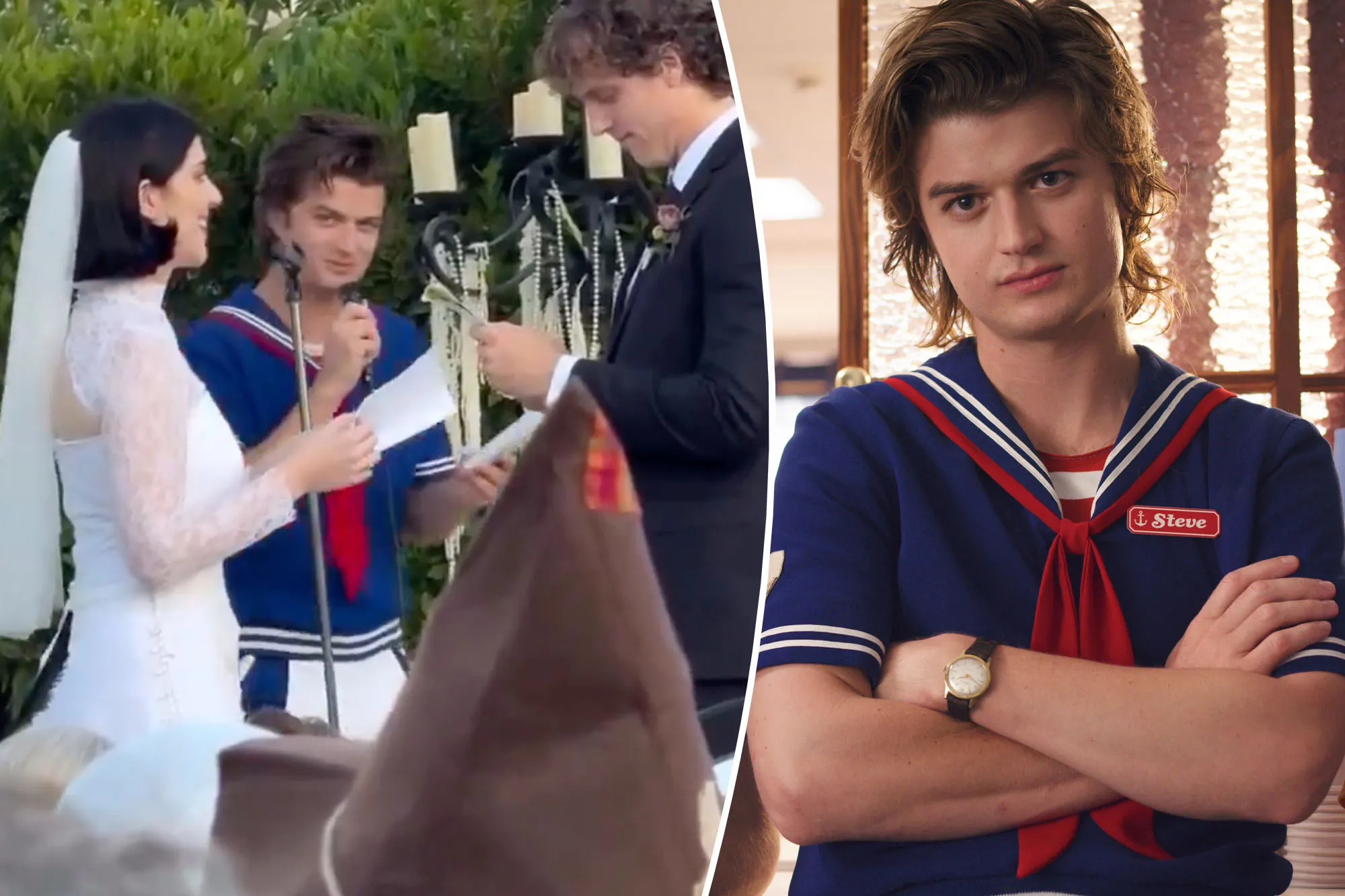 “Only Joe Keery could make a Scoops Ahoy uniform look wedding appropriate,” one account wrote.