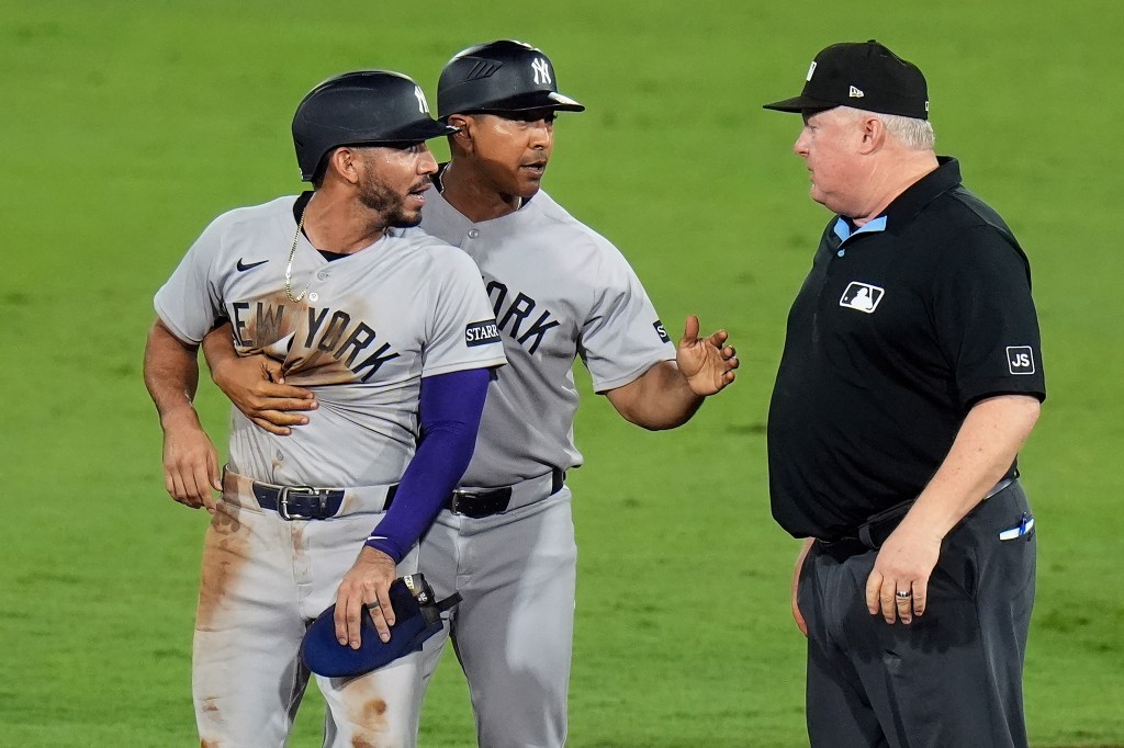“I was like, ‘There’s no way you could see that I came off the bag in motion. How can you see that in real time?’” Caballero said. “I was just frustrated, because it’s like a tenth of a second I came off the bag. You can see it on camera. There’s no way you can see it in play. Obviously I said it multiple times and he didn’t like it.”