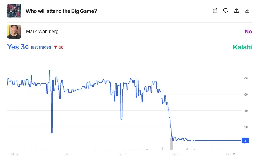 Wahlberg was among the many celebrities listed on the “Who will attend the Big Game?” market on Kalshi and, according to ESPN’s David Purdum, the Boston native was the most popular choice among traders to show up.