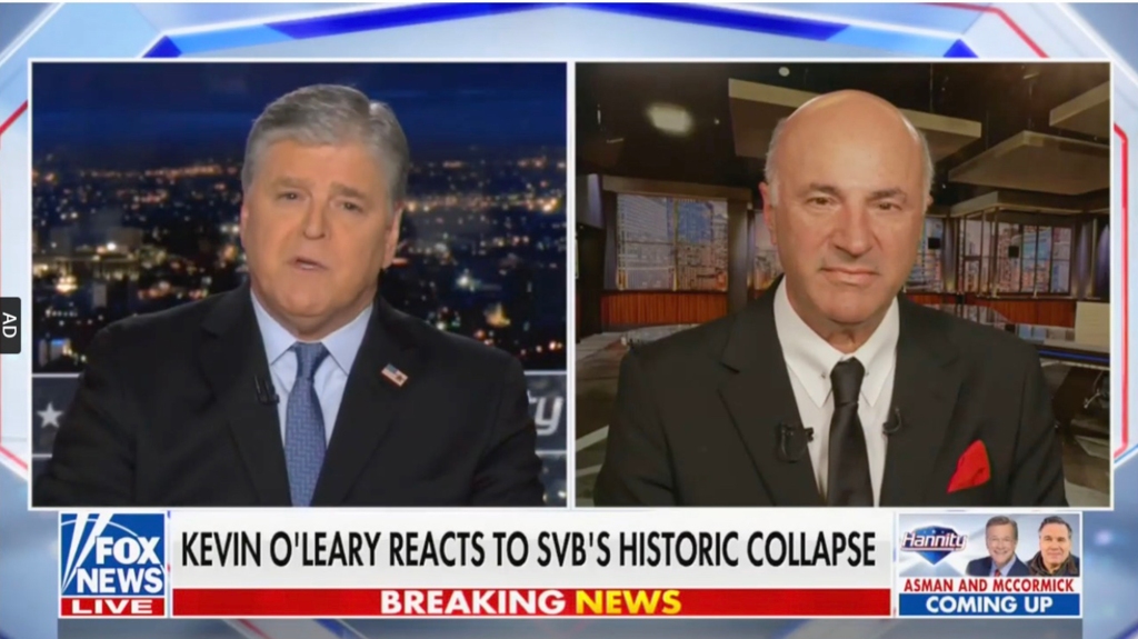 During an appearance on Fox News Channel’s “Hannity,” O’Leary admitted that “many companies” in his private equity portfolio had deposits in SVB prior to its collapse.