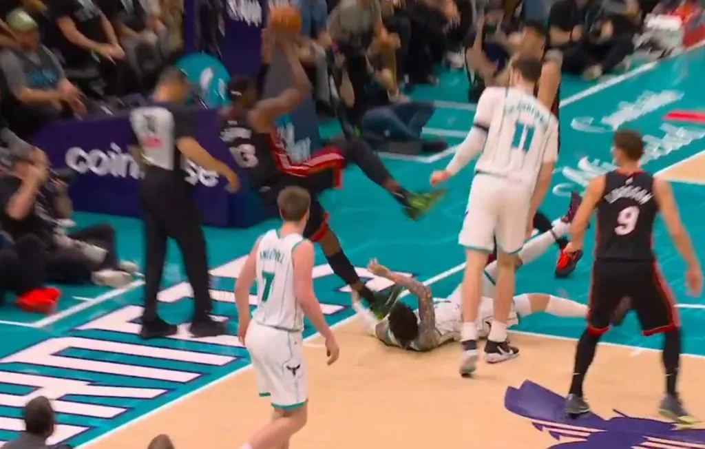 The incident happened in the second quarter when Ball fell to the floor after taking a shot and swiped at the leg of Adebayo, causing the Heat big man to fall hard to the court and leave the game with a lower back issue.