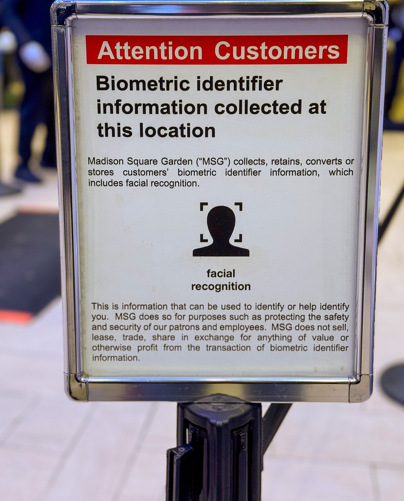MSG Entertainment advises event goers that they’ll be subject to facial recognition at its venues.