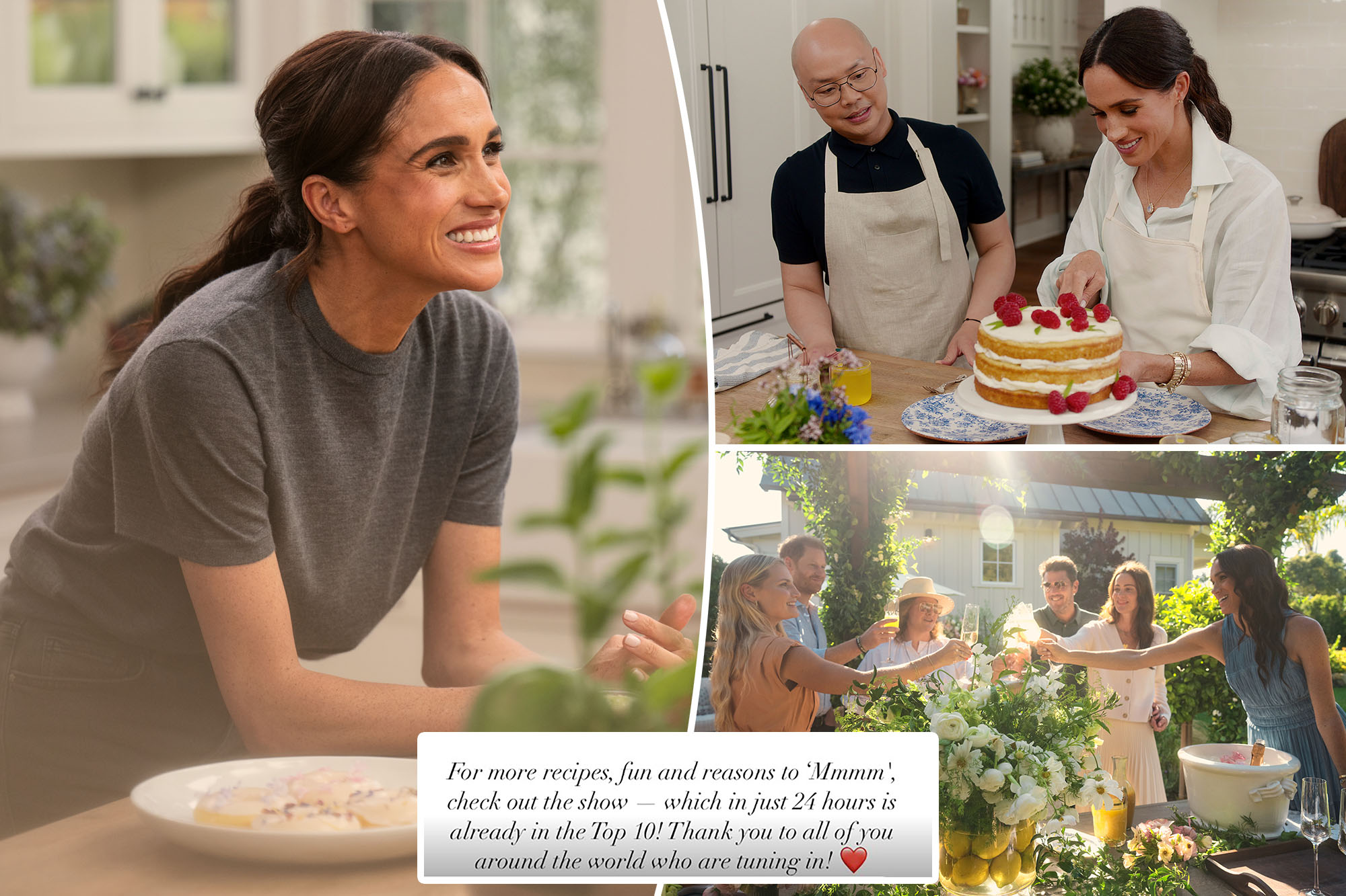 “For more recipes, fun and reasons to ‘Mmmm’, check out the show — which in just 24 hours is already in the Top 10,” Markle wrote on her Instagram Story.