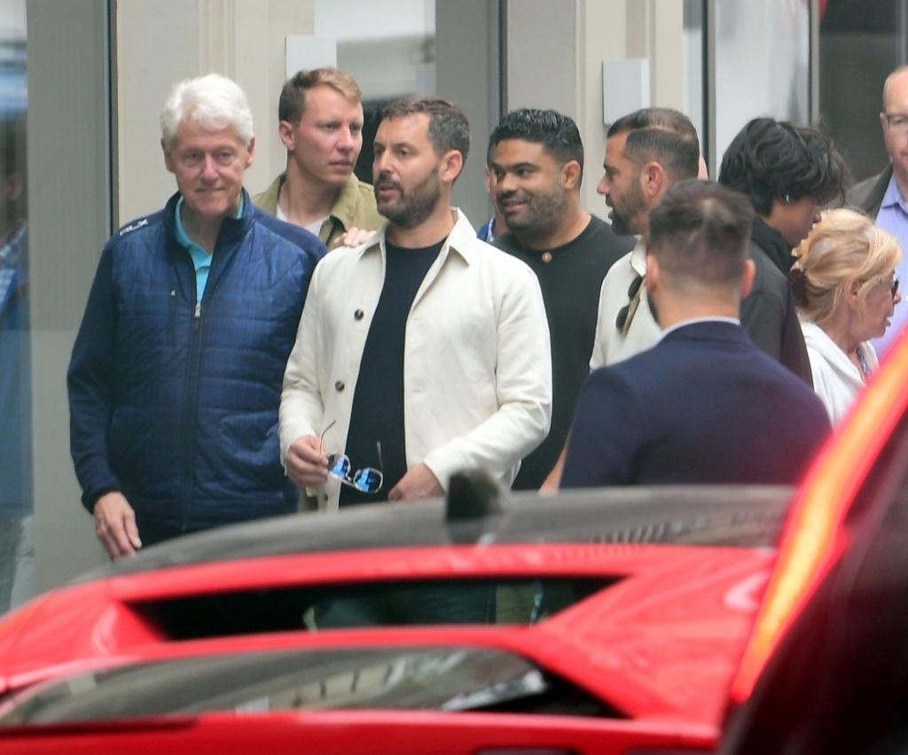 The pair were dressed casually in jeans and light jackets and trailed by a small entourage during the London walkabout — which took place on the eve of Clinton’s trip to Albania.