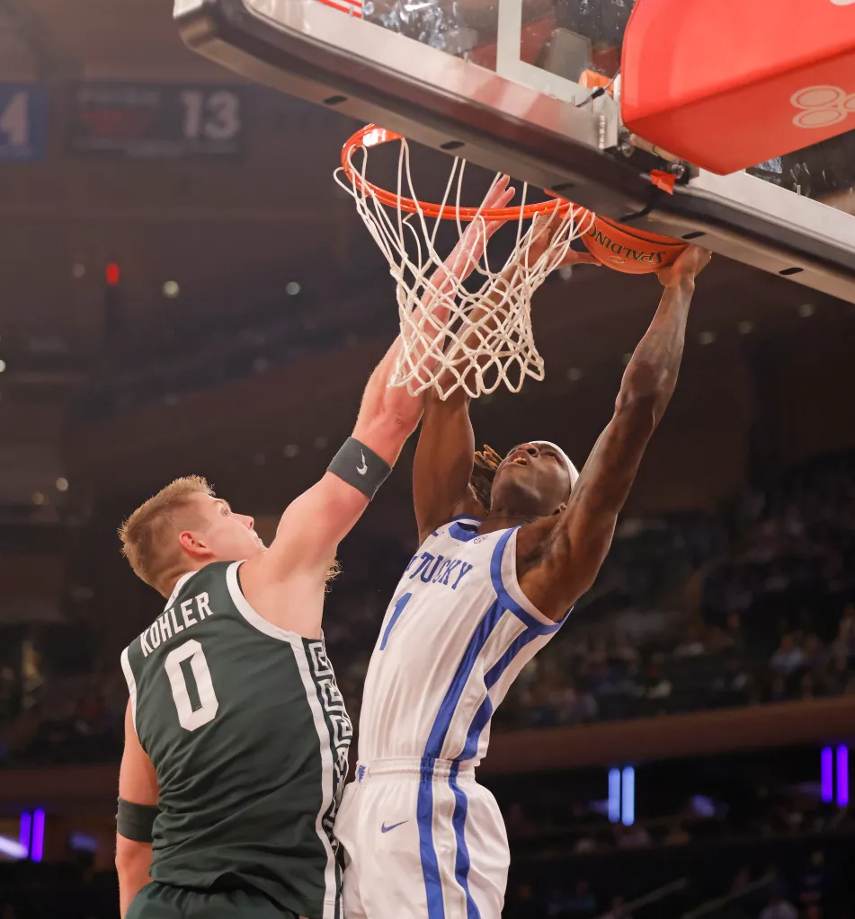But so far, coach Mark Pope’s team has been a disappointment, partly due to injuries to Quaintance and Lowe. Their struggles continued Tuesday night at the Garden, in a one-sided 83-66 loss to No. 17 Michigan State, a team built the old-school way, almost entirely through player development and high school recruiting. Contributors Trey Fort (Samford) and Divine Ugochukwu (Miami), it should be noted, are transfers new to the program.