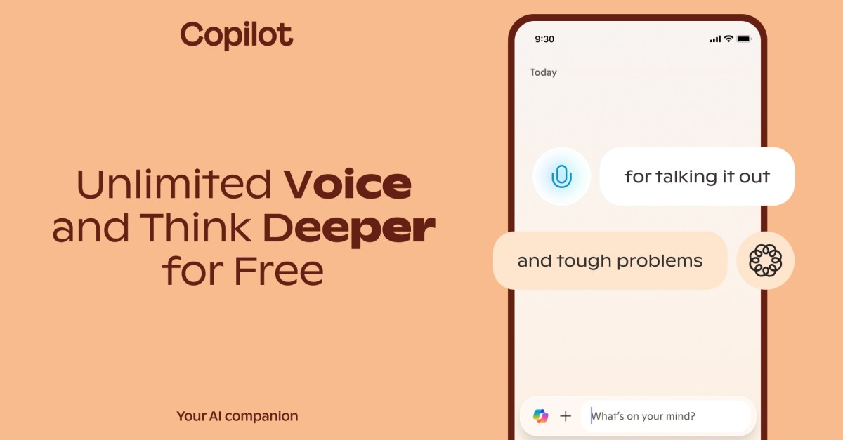 Microsoft makes Copilot Voice and Think Deeper free with unlimited use
