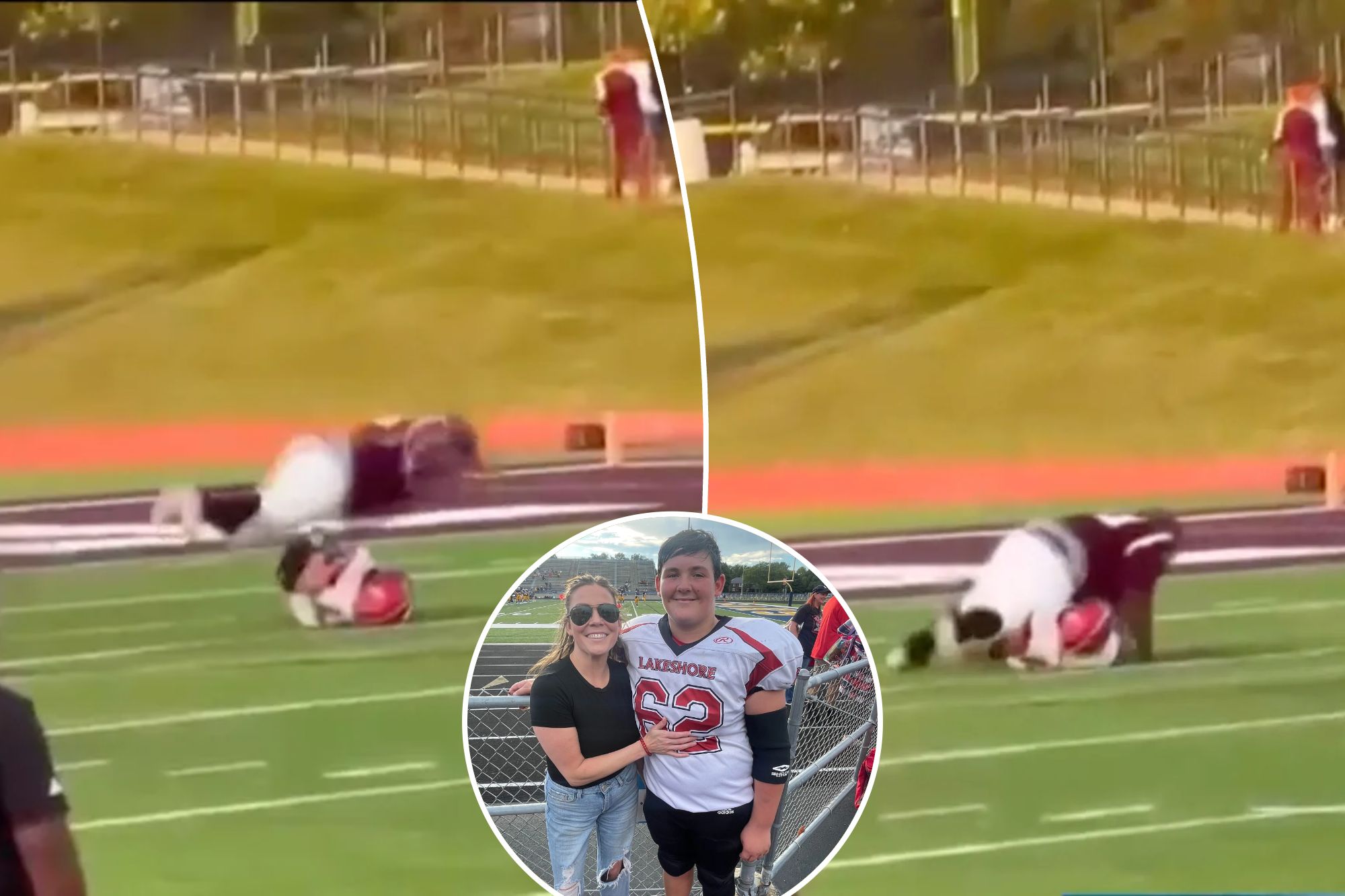 Mom's horrified reaction after son had spine broken in football belly flop attack