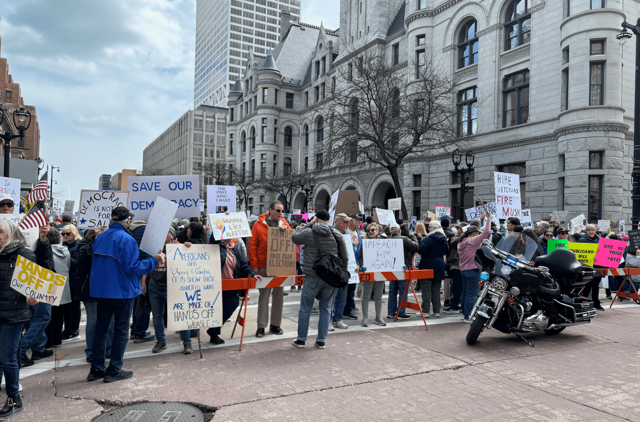 Jessica Toman, who went to the protest in Milwaukee, Wisconsin, texted the above image to me. A person posting images of the same protest on Bluesky guessed that protesters numbered in the thousands.