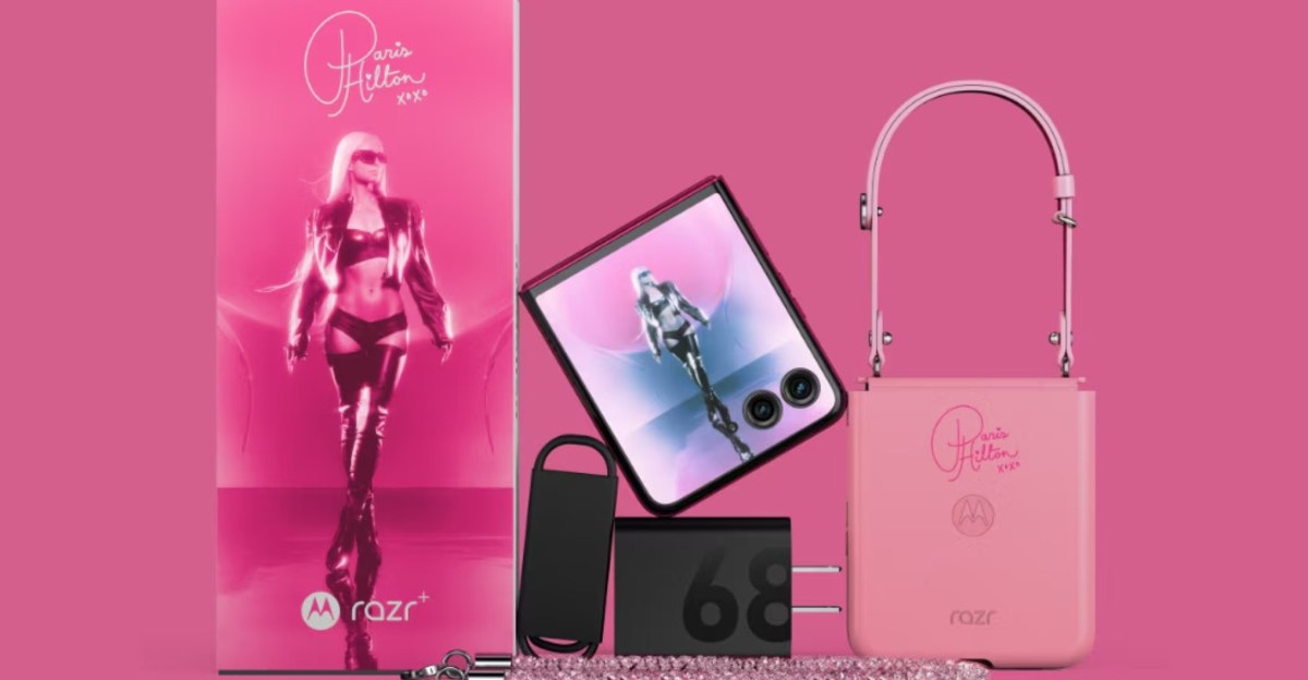 Motorola has teamed up with Paris Hilton to release a limited-edition version of the Razr Plus. It’s exactly what you expect: pink, pricey ($1,199.99 to be exact, $200 more than the standard model), and comes with a custom baby pink vegan leather case that looks like a teeny handbag. It even includes an alternative sparkly case strap in — you guessed it — pink.