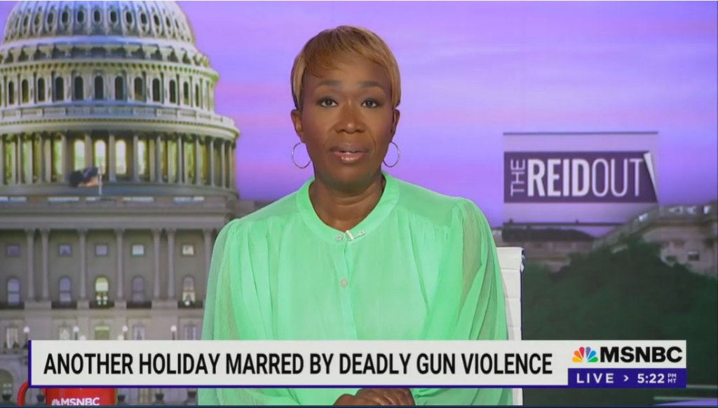 MSNBC’s Joy Reid said Wednesday during “The Reidout” that she was afraid to leave her house on July 4 because America is “awash with guns.”